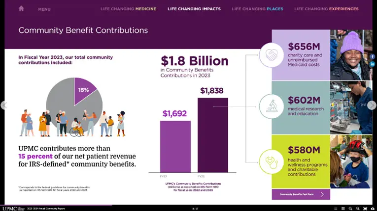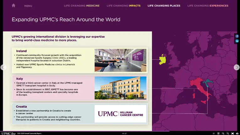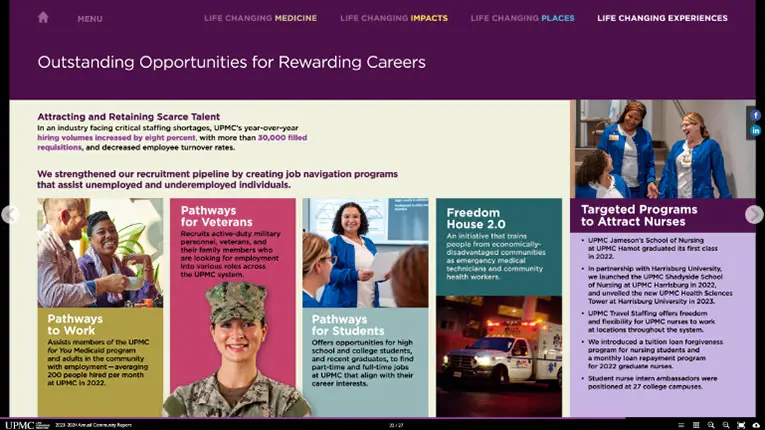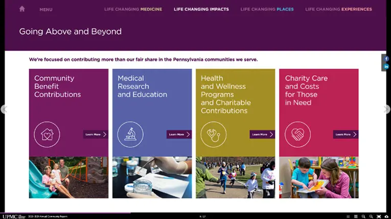 UPMC wanted a new way to present their annual community report. They wanted it to be more digestible, high level, while still relaying key messaging and impact to the communities it serves.